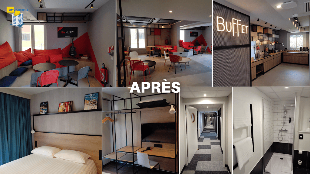 - Autres espaces rénovés : services généraux, accueil, lobby, salle petit-déjeuner